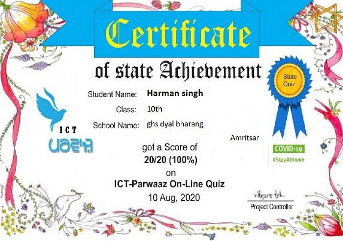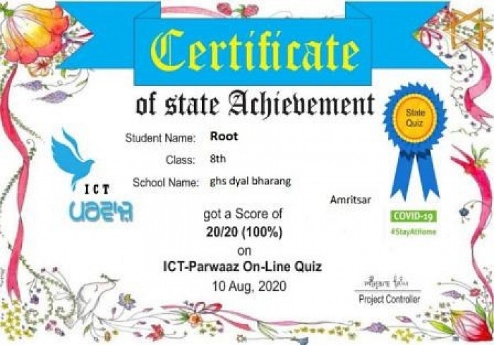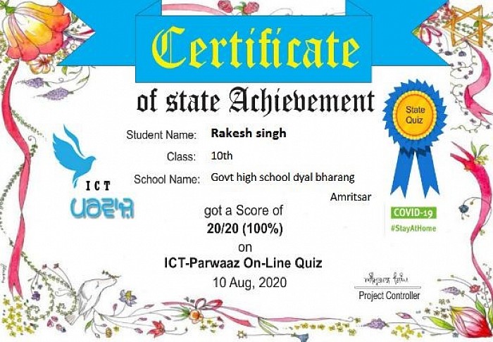 ICT Parwaaz organized state level quiz competition in which our school students participated in it and scored full marks ICT Parwaaz awarded them certificates on their achievement.